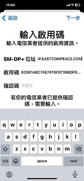 步驟四、手動輸入詳細資訊-將EMAIL的SM-DP-Address 輸入-Activation Code輸入-按下確認