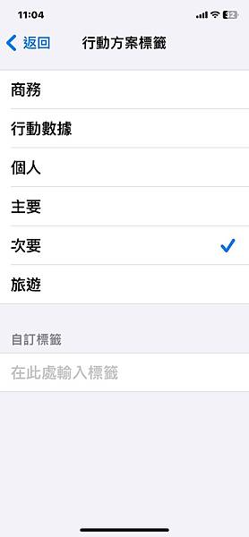 步驟五、可把行動方案標籤選擇次要或是旅遊,目的是要跟原本在台灣的主要行動網路做區別